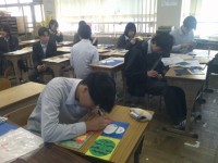 英語の授業では,スピーキングテストの原稿を先生に添削してもらっていました。家庭科の授業では,本返し縫いの練習をしていました。音楽は,アルトリコーダーの指使いを練習していました。