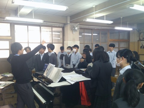 音楽の授業は,西本先生の研究授業で,荒城の月の学習をしました。教育委員会から二人の先生に来ていただき,指導助言をしていただきました。