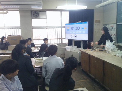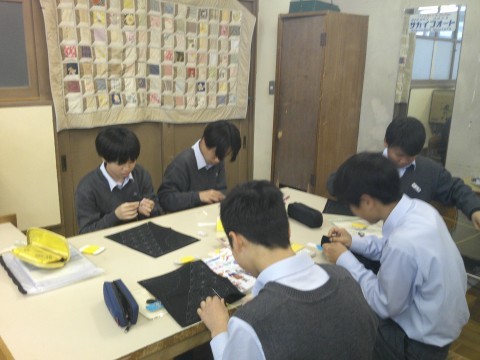 体育の授業では,長距離走を駅伝形式で取り組んでいます。チームの仲間を大きな声で応援していました。家庭科は,刺し子の実習です。普段あまり持たない針と糸で丁寧に進めていました。理科の授業では,ガスバーナーの使い方の説明を受けていました。