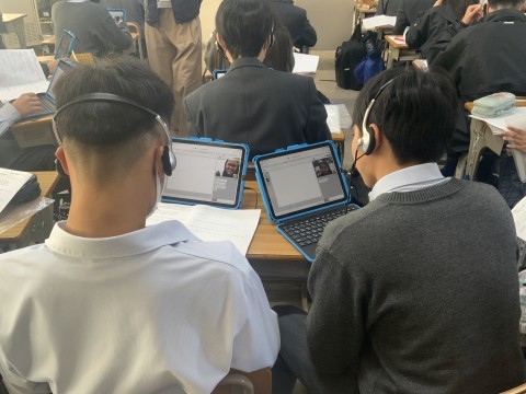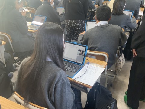 昨日に続いて,本日も2年4組でオンライン英会話を実施しました。
