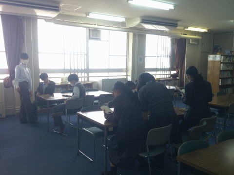 昼休みに学校図書館で,読書している生徒もいます。昼休みと木・金曜日の放課後に開館していますので,足を運んでください。