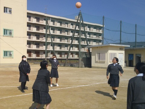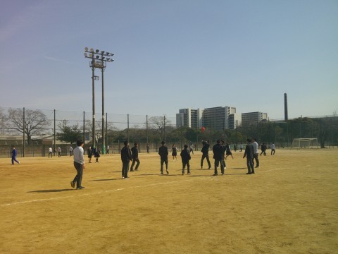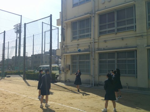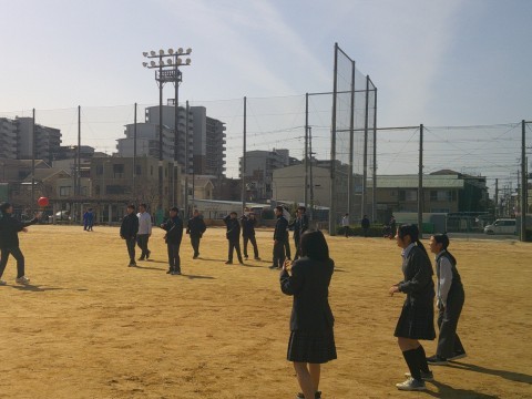 暖かくなってきたグランドでは,男女ともに元気にボール遊びをしていました。