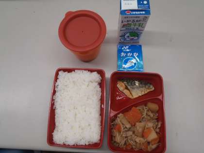 今日は肉じゃがかさばの塩焼きかと生徒に聞いたところ3:1ぐらいの割合で肉じゃがの答えが多かったです。今は魚より肉のほうが好まれているようです。