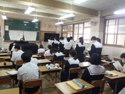音楽の授業は、ようやく合唱の練習が始まりました。これまで声を出してうたうことがなかったので、うれしさ半面、戸惑い半面といったところでしょうか。