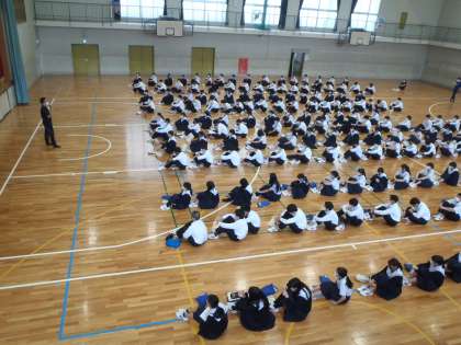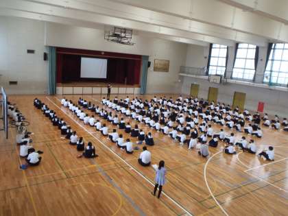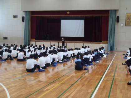 10月13日(水)3年生は、6時間目に体育館で修学旅行の事前指導を行いました。
