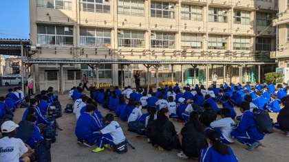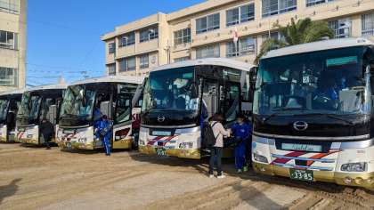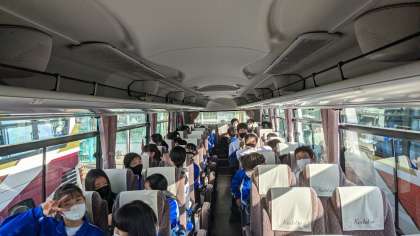 バスに乗り込み、奈良県の吉野宮滝野外学校まで向かいます。