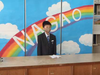 先に新1年生の代表が先輩の2、3年生にあいさつを述べました。自身の不安と期待、そして、先輩方へのお願いなど短い文章でしたが、上手のまとめられて、しかも、はきはきと話しとてもすがすがしいあいさつでした。