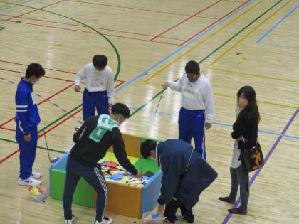 長中からも参加しました。広い大浜体育館で感染症対策のため分散での開催でのびのびと活動できました。魚つり、輪投げ、ボーリング、ストラックアウトなどに分かれて参加しました。生徒たちは普段よりもいきいきと活動して笑顔が輝いていました。終了後に撮った集合写真も素晴らしいポーズです。また、参加したいね。