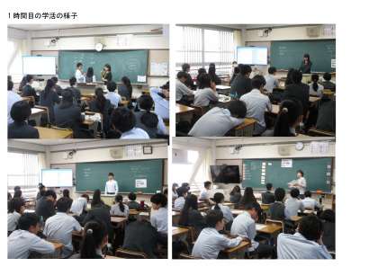 1時間目の各クラスの学活の様子です。自己紹介をしているクラスや担任の先生がクラスのルールを説明しているクラス。また、委員決めをしている様子など、初めてゆっくりと学級活動をしていました。1年生は体育館で学年集会でした。