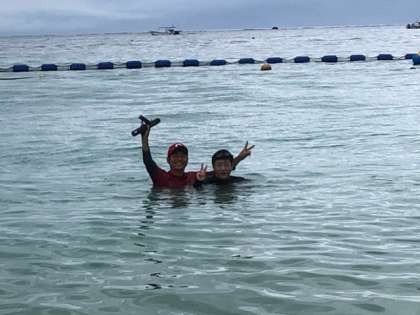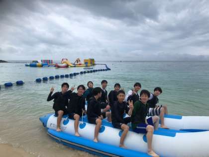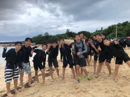 天気はくもりですが、生徒は元気にマリン体験中です。