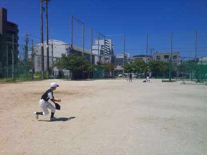 午前中の運動場では、陸上競技部と野球部が練習していました。