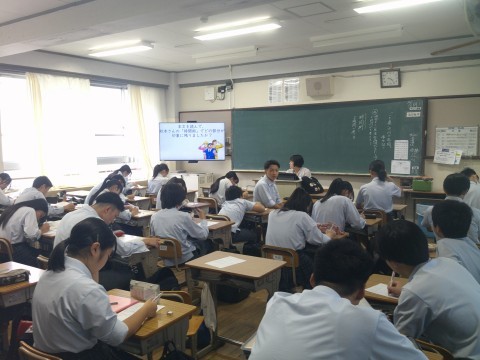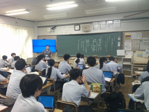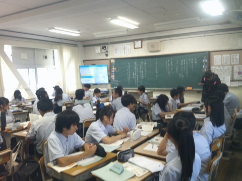 英語の授業では,NSのジャッキー先生と聞いたり,タブレットで調べたりしながら,自己紹介文を作っていました。もう一クラスは,命令文の学習でした。音楽は,合唱コンクールのパート練習をしていました。元気に歌っていました。