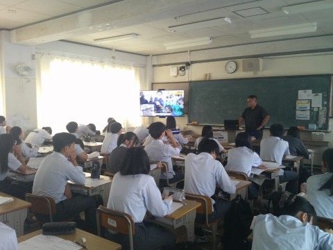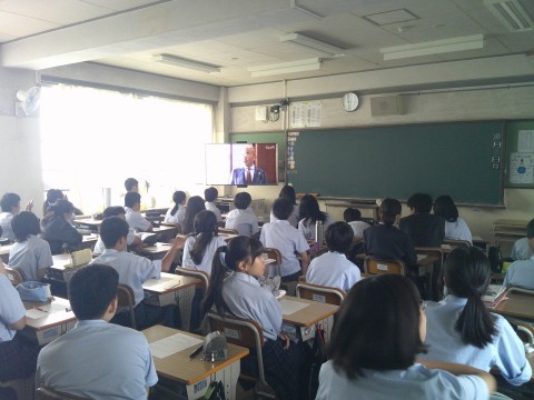 いくつかの教室で学習しています。一番大きな教室での様子です。頑張っています。