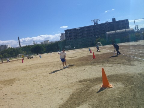 すっかり秋の空気の中,昼休みの運動場では,いろいろなボール遊びをしています。