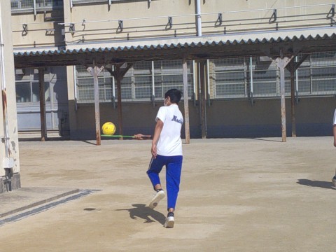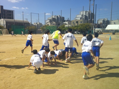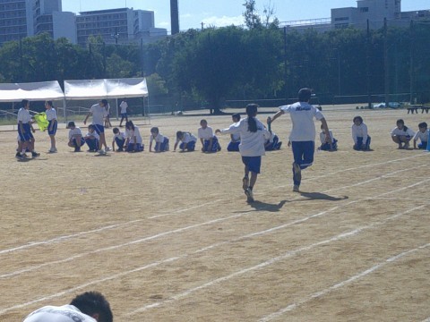 体育の授業で,1・2年生が体育大会の種目練習を行っていました。