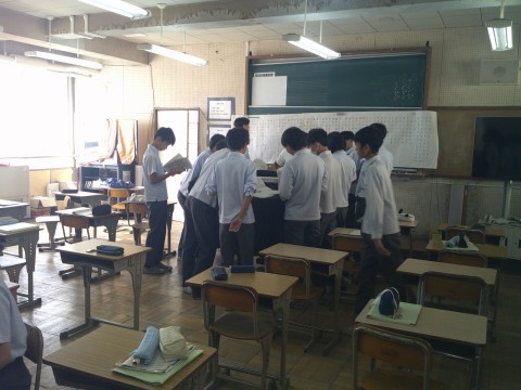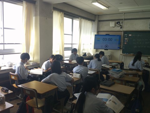 体育は,学年競技の練習でした。タイムの新記録が出たようで,歓声が上がっていました。数学は,問題をグループで解いていました。内容も段々と難しくなってきました。英語は,ペアで本文を読む学習でした。文末の上がり下がりに注意しながら読んでいました。