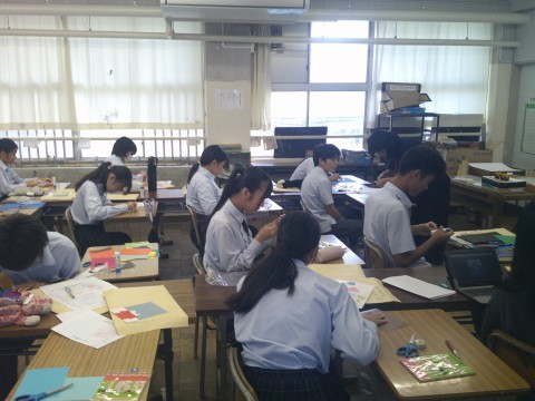 美術の授業では,細かい貼り絵の制作を行っていました。音楽は,合唱のパート練習。数学は,相似や合同の図形の問題に取組んでいました。