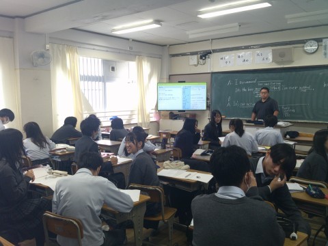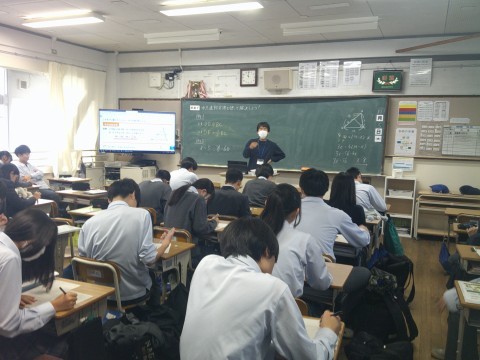 1・2年生が学年閉鎖のため,3年生だけが,授業を行っています。英語の授業では,今まで観た映画や読んだ本を英語で紹介することをペアで行っていました。数学は,中点連結定理を活用して,証明する問題演習でした。