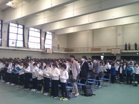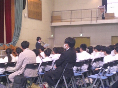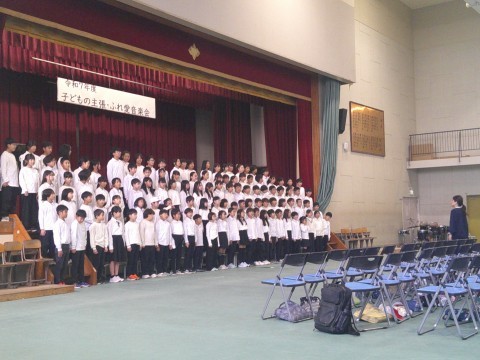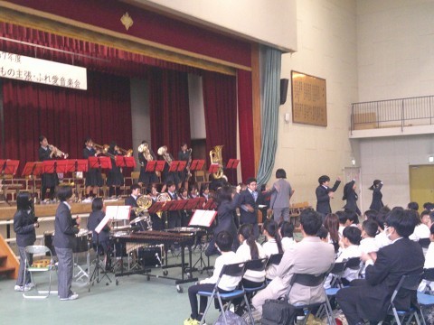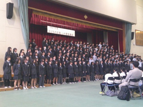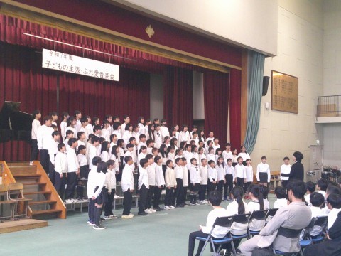 長尾中学校区健全育成協議会主催の子どもの主張・ふれ愛音楽会を体育館で開催しました。東三国丘小学校・東浅香山小学校の5年生を迎え,