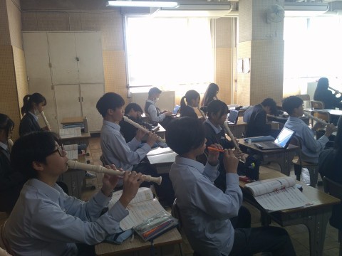 英語の授業では,スピーキングテストの原稿を先生に添削してもらっていました。家庭科の授業では,本返し縫いの練習をしていました。音楽は,アルトリコーダーの指使いを練習していました。
