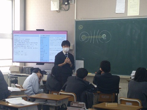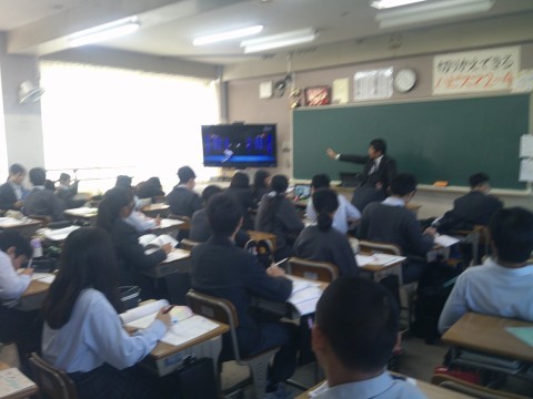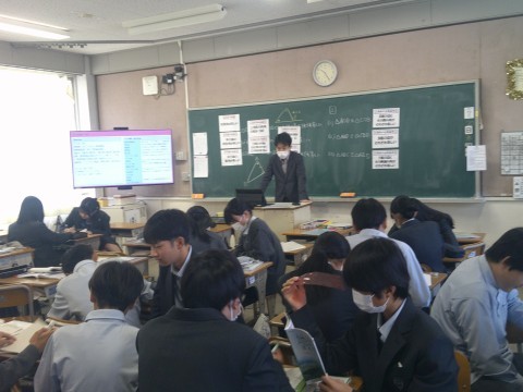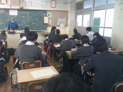 理科の授業では,テスト前なのでテスト勉強をしている生徒や前の席に陣取り先生の解説を聞いている生徒がいました。数学もテスト範囲の授業が終わったので,他の教科のテスト勉強をしている生徒がいました。体育では,マット運動の開脚前転についてNHK制作の動画を視ながら,注意点を考えていました。