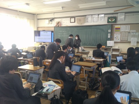 男子体育は,ソフトボールの基本練習,ゴロやワンバウンドのボールを投げて捕球の練習をしていました。女子は,試験範囲の内容をタブレット使ってクイズ形式で復習していました。国語は,複数の意見を読んで自分の考えを持つ授業でした。