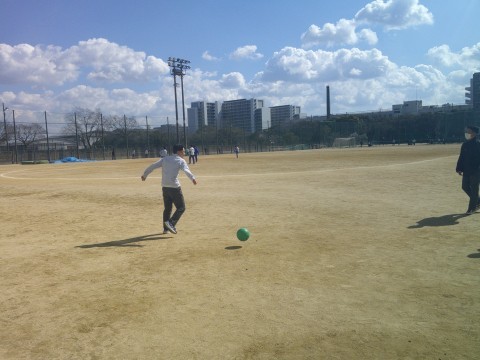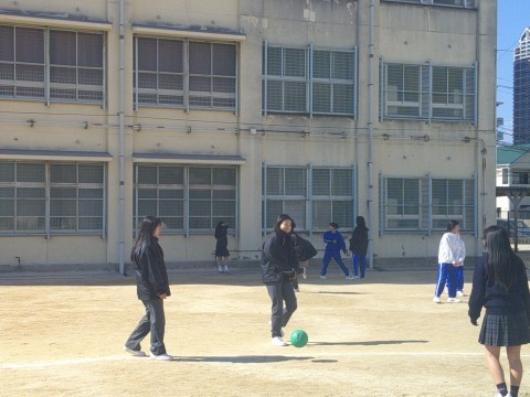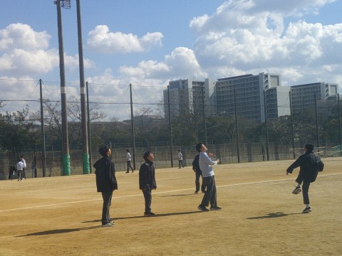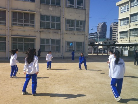 冷たい風にも負けず,各グループでボールを使って,楽しんでいました。