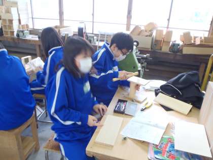 音楽の授業では、ベートーベンの運命を聞いて、曲の特徴の学習をしています。この曲はリズムが特徴で同じリズムが何回も繰り返られています。生徒たちは同じリズムが何回繰り返されているかを聞き取っていました。