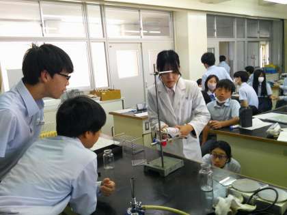 理科の授業では、教育実習生の授業が始まりました。教諭の指導の下、いよいよ実践的な実習です。