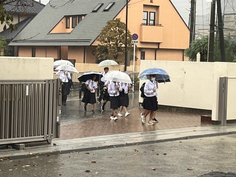 雨の登校になっています。