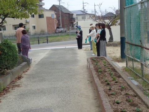 PTAの皆さんと後期美化委員会で花壇に花を植えました。