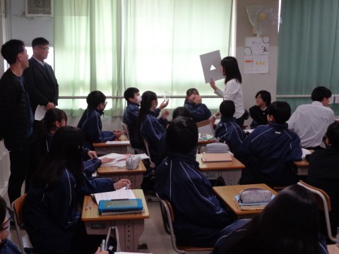 その様子を,他の中学校や教育委員会の先生方が見学に来られました。