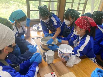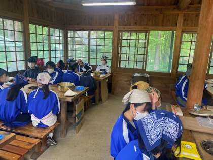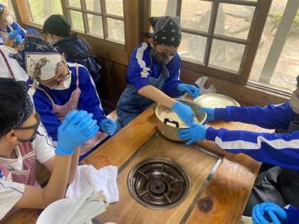 ウォークラリーが終わり、クラス単位で、うどん打ち体験がスタートしました。