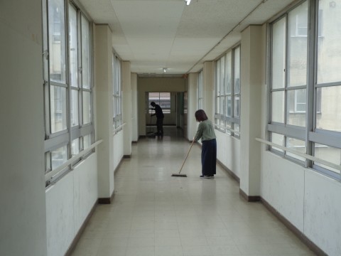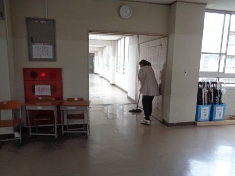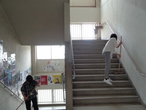 PTA健全緑化委員の皆さんで,階段や渡り廊下の清掃を行いました。