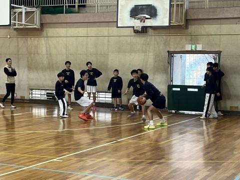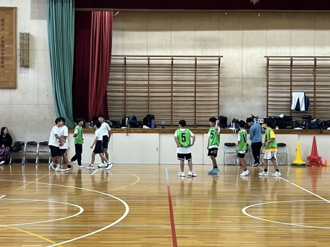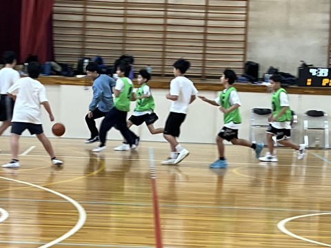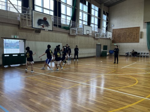 体育館全面を使って練習しています。6年生の体験する様子も見られます。