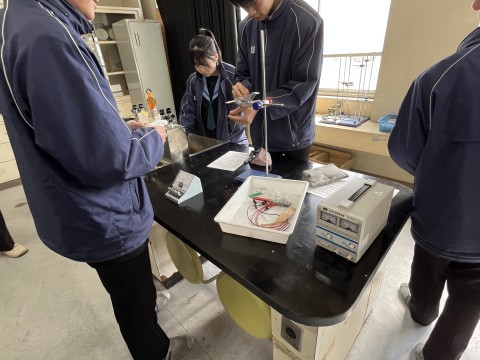 電流と磁界について実験で調べています。