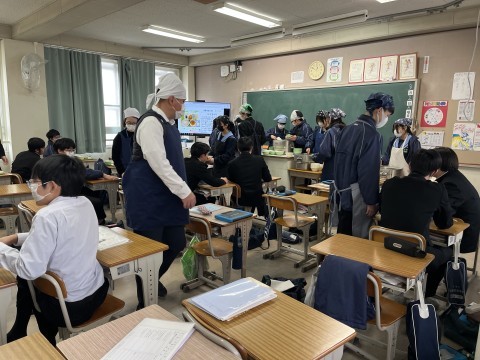 中学校1年生が小学校を訪問し,6年生に中学校生活についての質問に答え,説明しました。