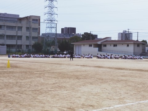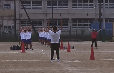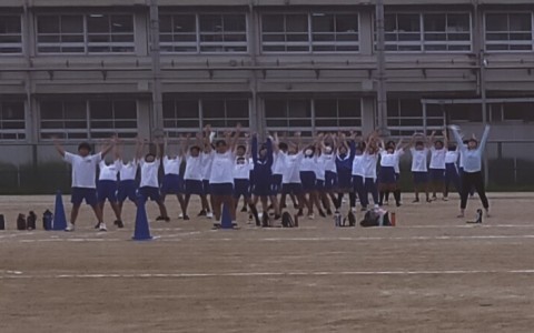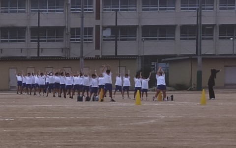 学年種目「台風の目」の練習では、「がんばれーファイトー」と声を掛け合い、どのクラスも頑張っています。