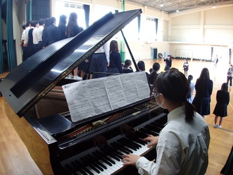 平和セレモニーと学年合唱のリハーサルも行いました。