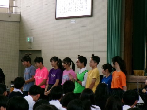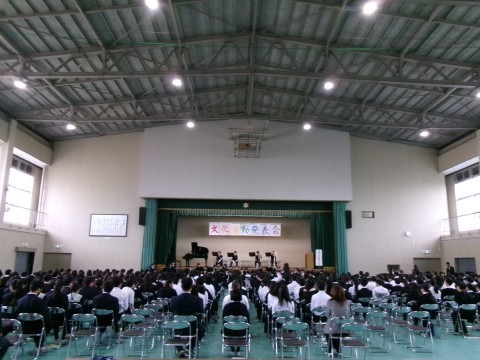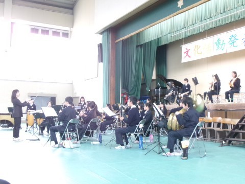 本日、文化活動発表会(舞台の部)を実施しました。開会式・諸注意の後、吹奏楽部の演奏で華やかに始まりました。様々な曲や演出で、スタートから盛り上がりました。