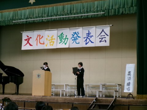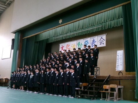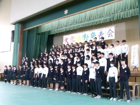 英語暗唱スピーチ、1年生の全体合唱、2年生の全体合唱です。落ち着いた堂々とした発表、心に響く歌声、素晴らしい発表でした。