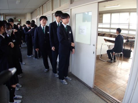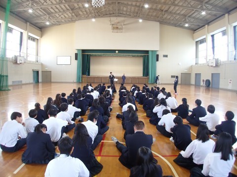 3枚め 校外学習に向けて担当の先生から目的・目標等を聴いている様子