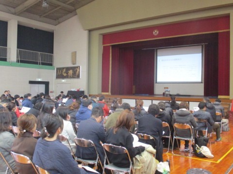 本日の午後は、新金岡東小学校にて、金岡北中学校区の4小中学校の教員が集まり、小中授業交流会が実施されました。前半は、2年・4年・5年の公開授業の参観を行いました。新金岡東小学校は、体力推進指定校ということもあり、今回は3クラスとも体育科の授業公開となりました。後半は、体育館に移動し、研修主任や体育主任から取り組みについての話があり、続いて教育委員会事務局の指導主事より講評をいただきました。最後に、外部よりお招きした講師の方に「カラダの発達と運動あそび」のテーマで講演いただきました。