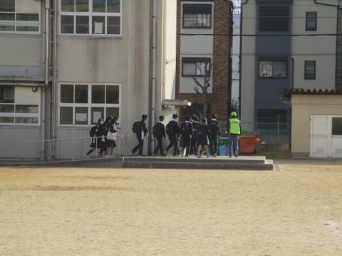 12/9(水)放課後、引き渡し訓練が実施されました。引き渡し訓練は、緊急時に中学生が、小学生の弟や妹を迎えに行き、家に一緒に帰るシミュレーション訓練です。小学生については、保護者への引き渡しが一般的ですが、緊急時、保護者が遠方の職場等からすぐには駆けつけられないことも想定されます。そういった事態に備え、毎年、新金岡小学校区では地域防災の取り組みとして行われています。今年も金岡北中学校では38名の生徒が、引き渡し訓練に参加しました。短時間でのスムーズな活動ができていたと感じます。ご協力ありがとうございました。