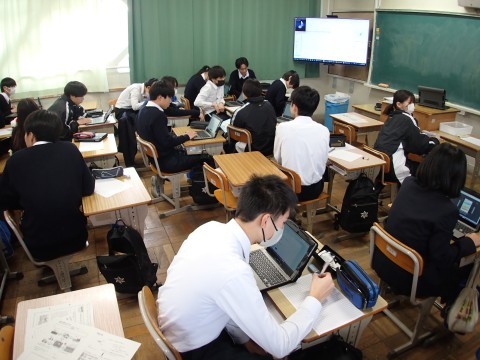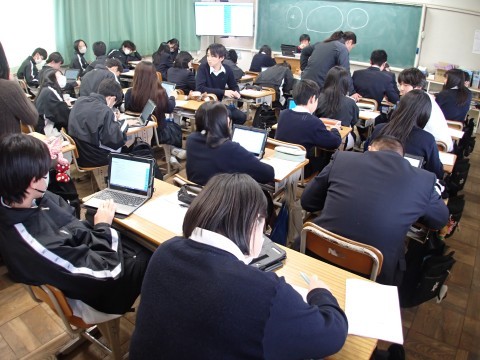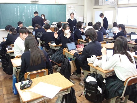 本日4限め、各クラスで自己申告書と卒業文集の作成をしている様子です。