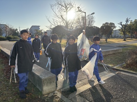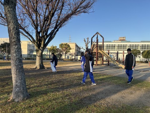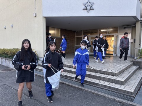 朝8時に集合し、保健環境委員と有志で校外地域清掃を行いました。