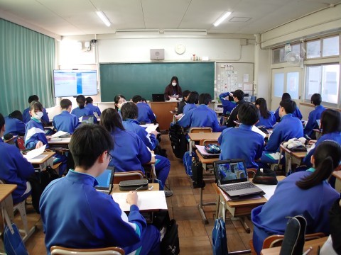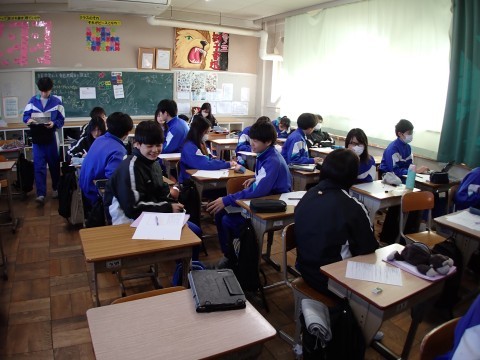 2学期の学校生活・道徳のふりかえりを記入している様子です。