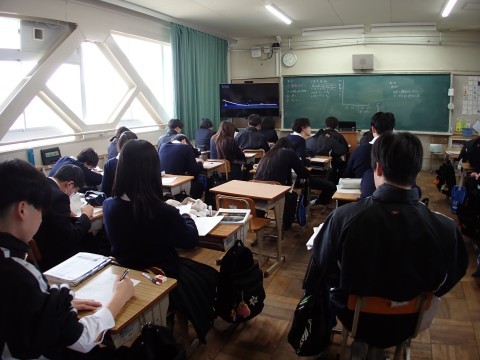 理科の授業で力学的エネルギーについて頑張っていました。