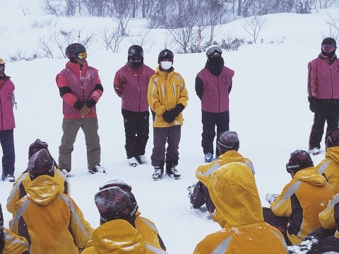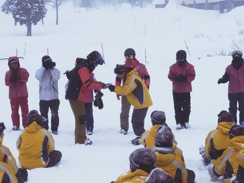 2日間のスキー講習を終えて、閉講式の様子です。インストラクターさんに2日間の感謝を述べ、修了証をいただきました。
