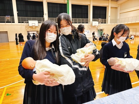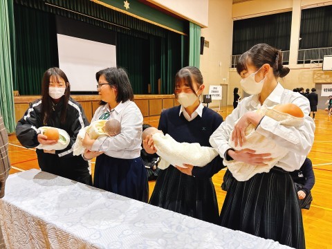 赤ちゃん抱っこ体験の様子です。